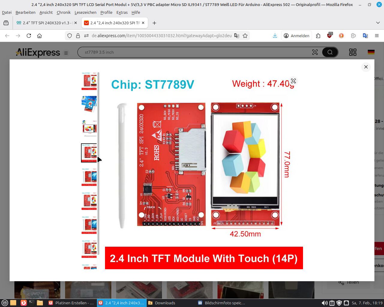 Good evening , A TFT SPI with 240X320 including an SD card reader. The display is from AZ-Delivery… a 2.2-inch or a bare display that one could take and modify would be very useful.