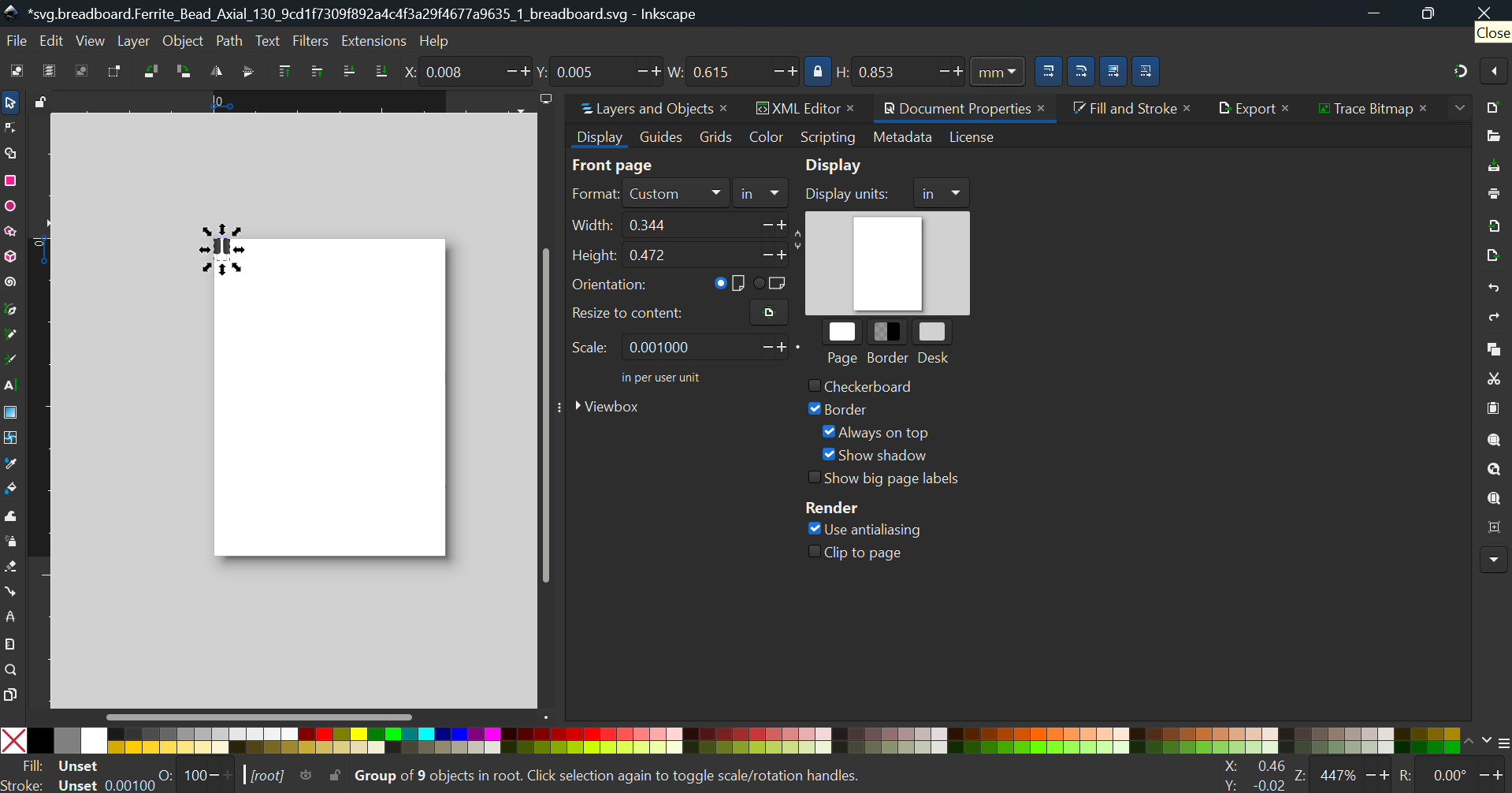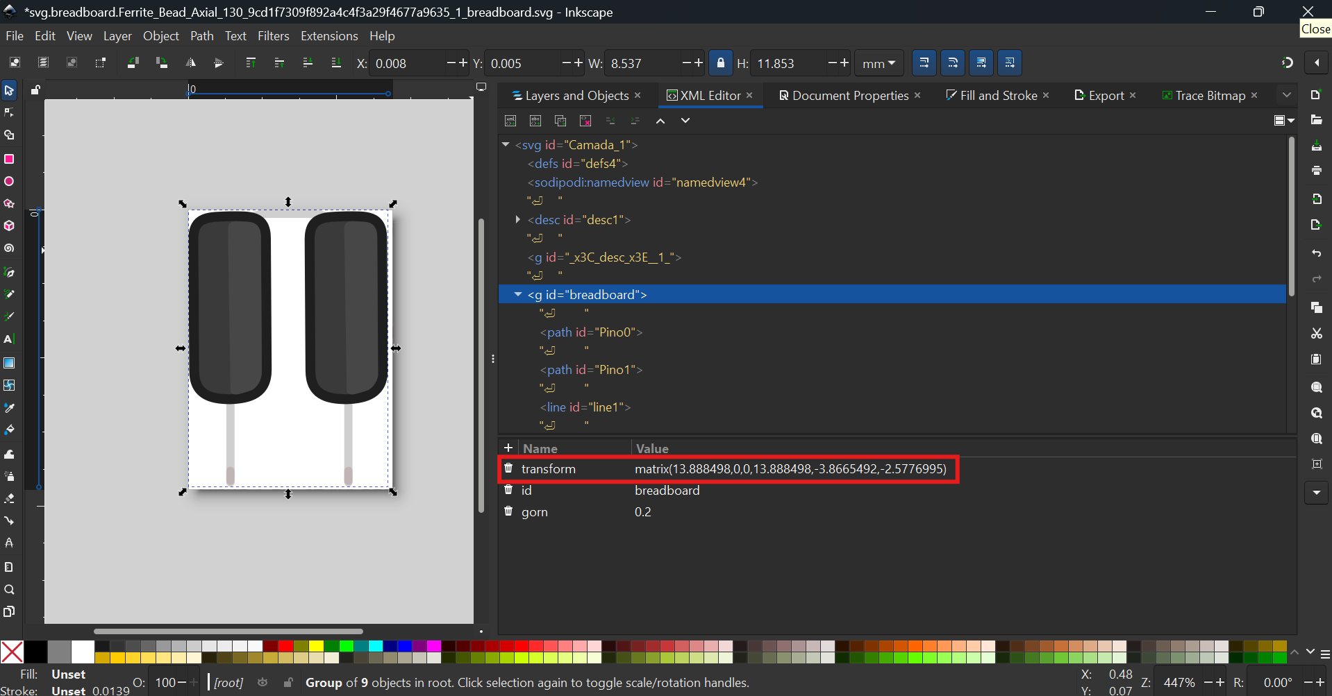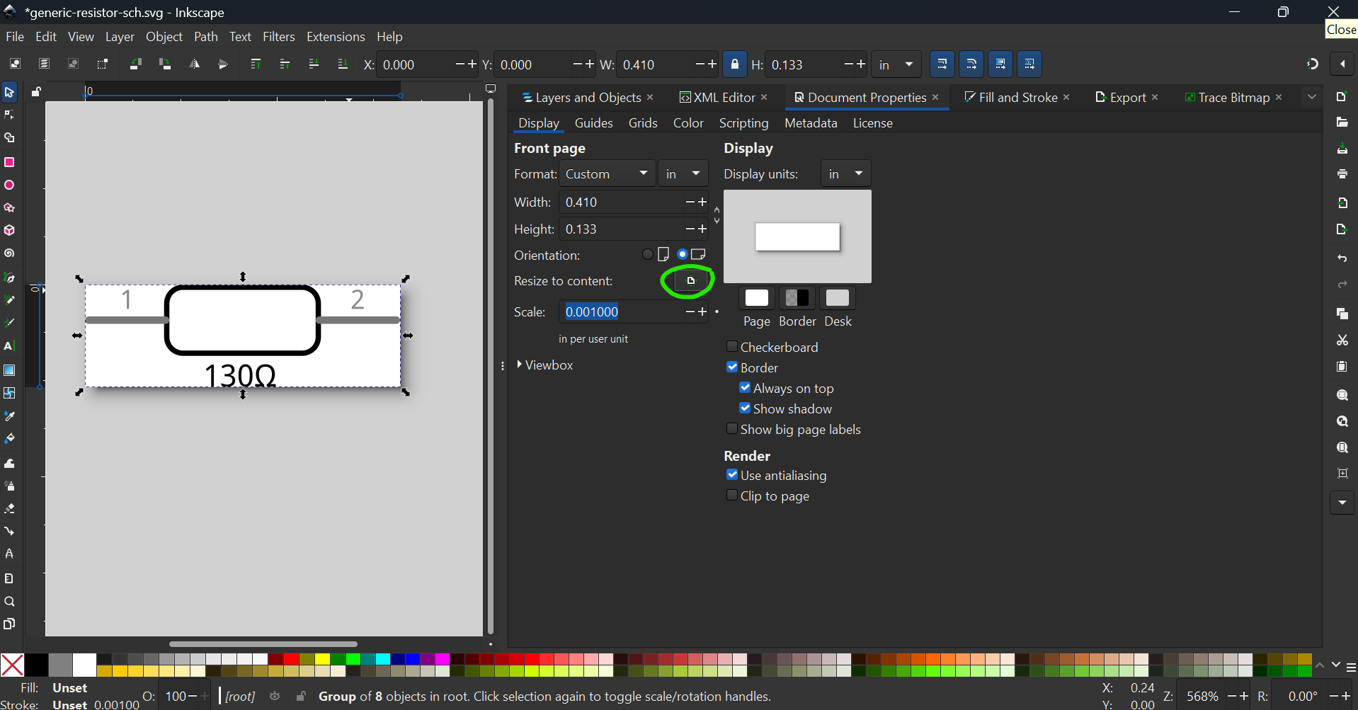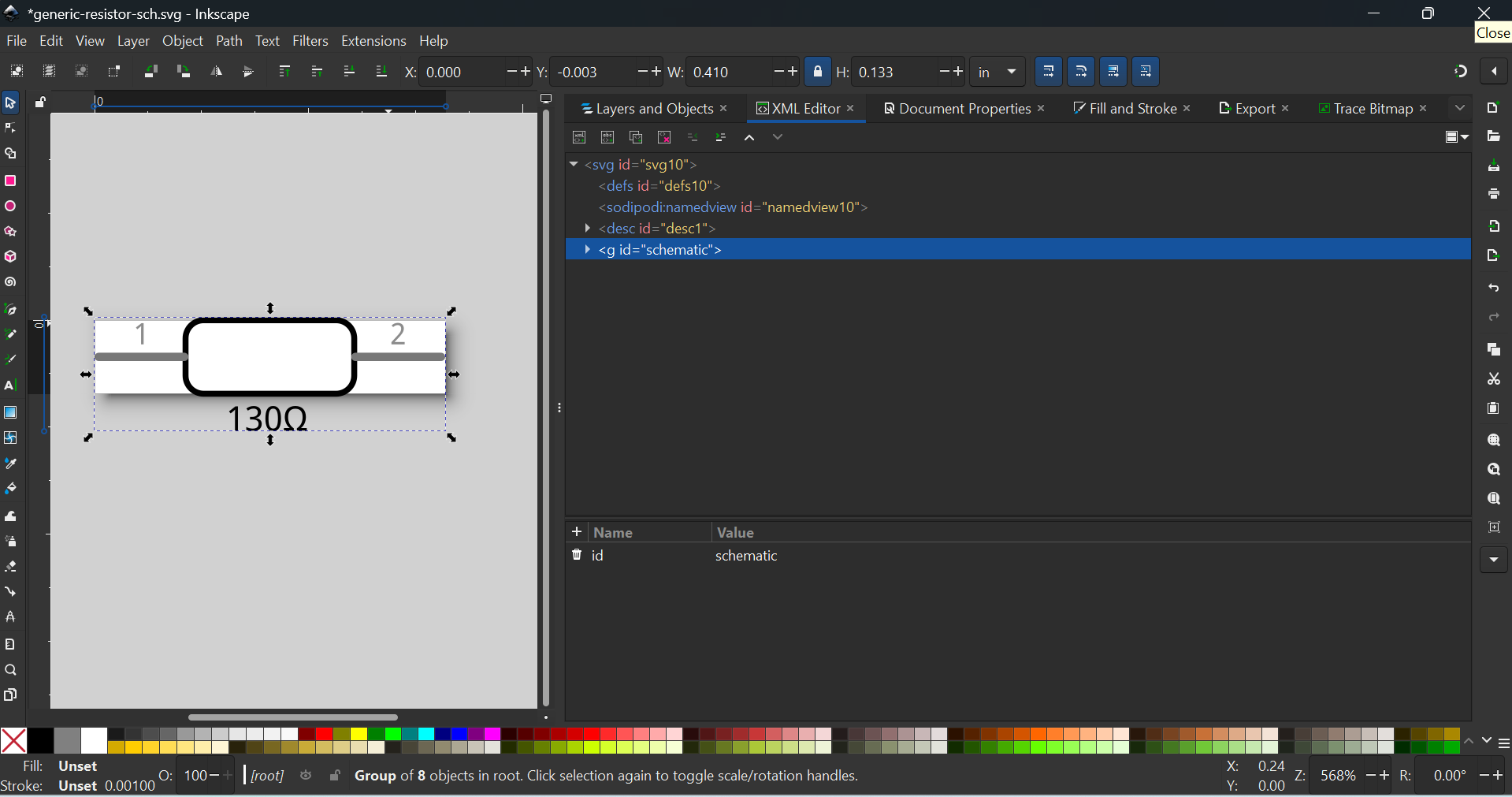 Next, open the file, rescale the SVG (documented in step above), and delete all the resistor lines