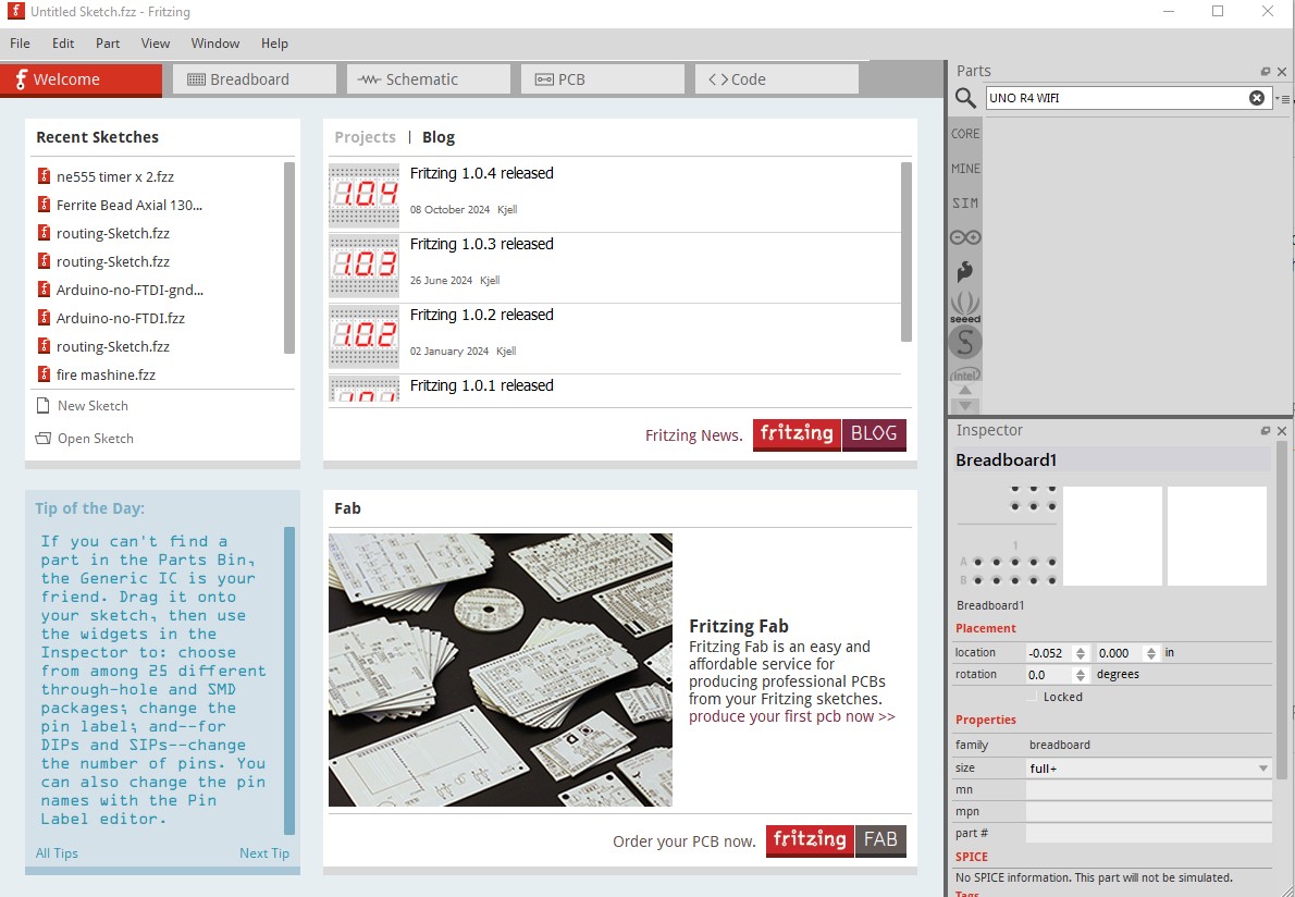 similarly a search for “fritzing part Arduino UNO R4 WIFI” turns up this post which should be what you want.