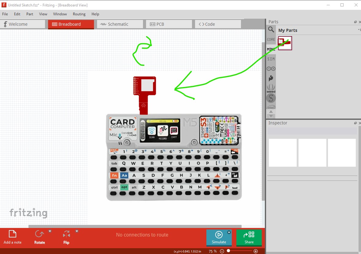and you have as much of a part as it is possible to make without any new parts. Only the sniffer will show up in schematic or pcb views as it is the only real Fritzing part.