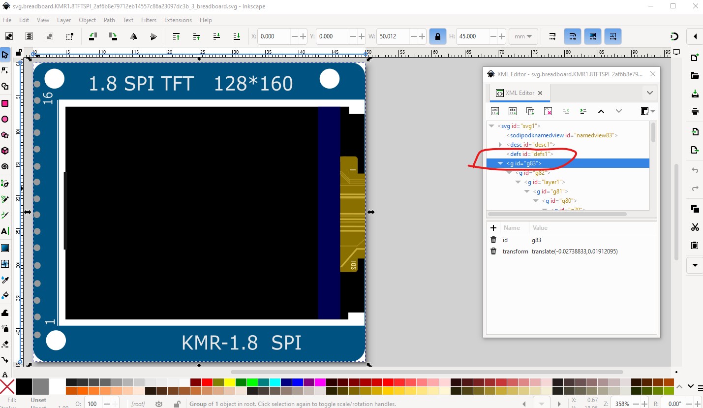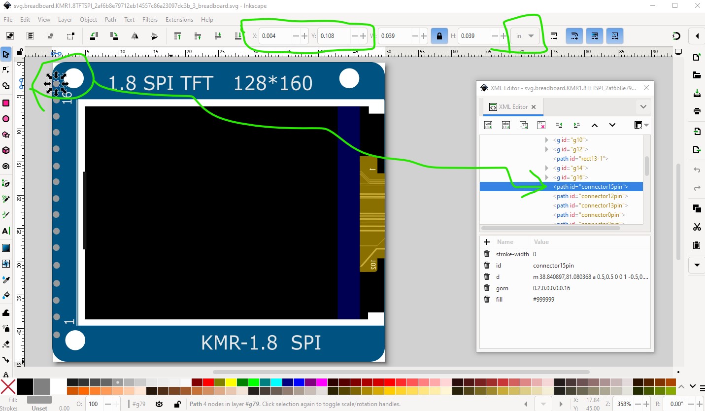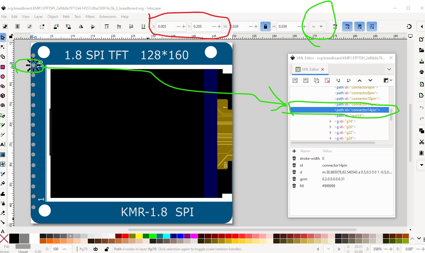 The other mistake is that the connectors are not on 0.1in boundaries in breadboard. FritzingCheckPart.py doesn’t currently check for that (it could, but it usually isn’t an issue.) That causes this: