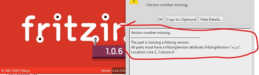 pressing OK will load the part fine (although it may have problems relating to the missing Fritzing version!)
