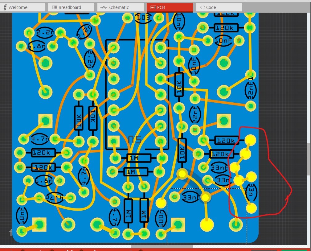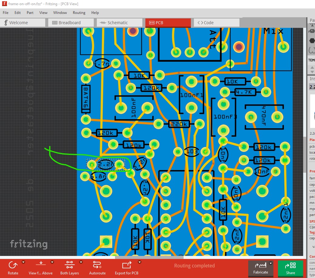 I’m not sure what happened on that 33nF on the bottom right. To correct it I had to delete all the traces in the PCB view again.