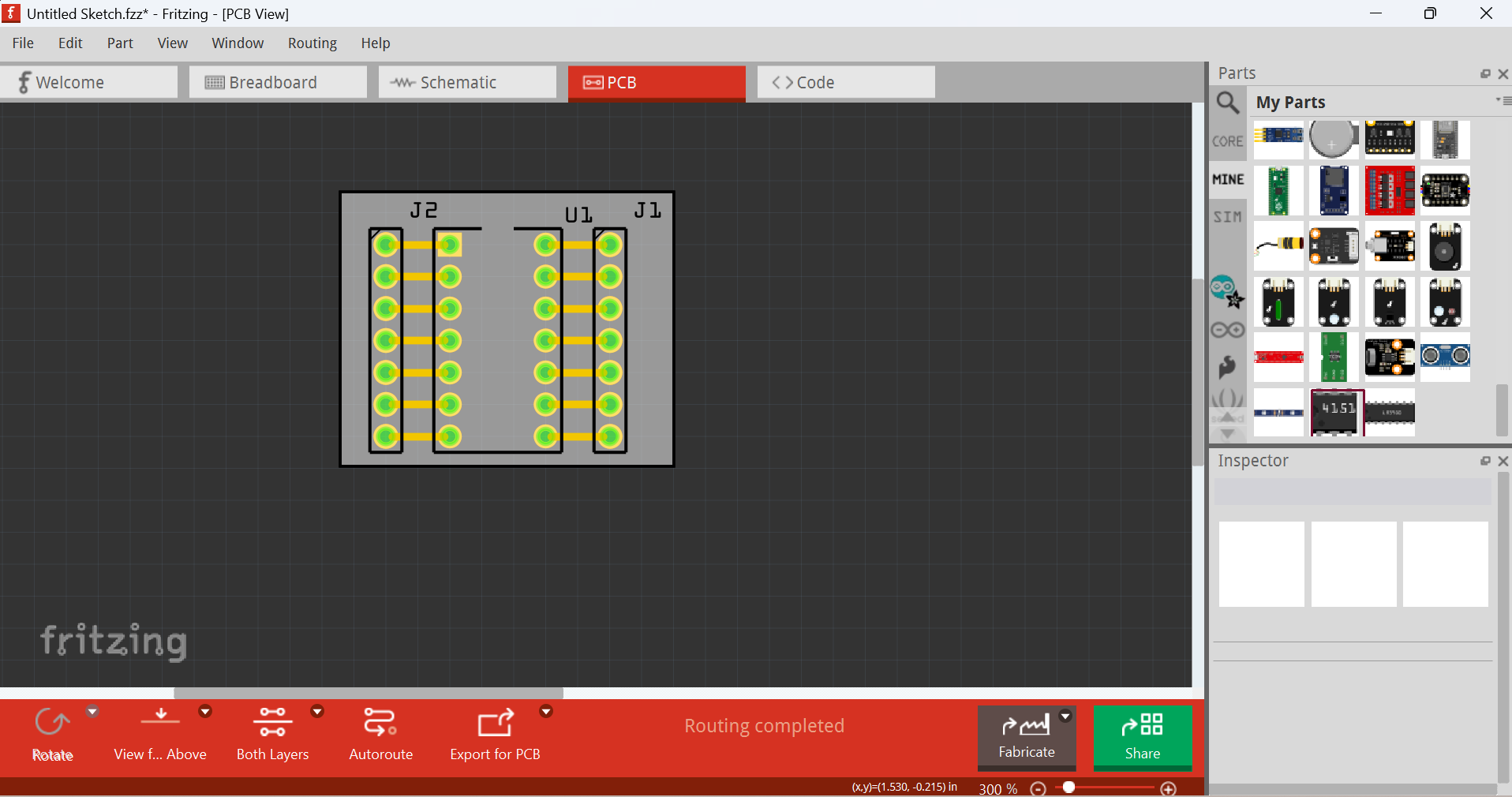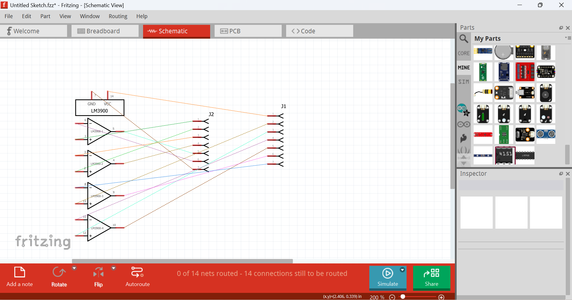 Then, I went to (i always do schematic cleanup last since it’s the most time consuming) and realized that the part in schematics view has no connections to any parts!