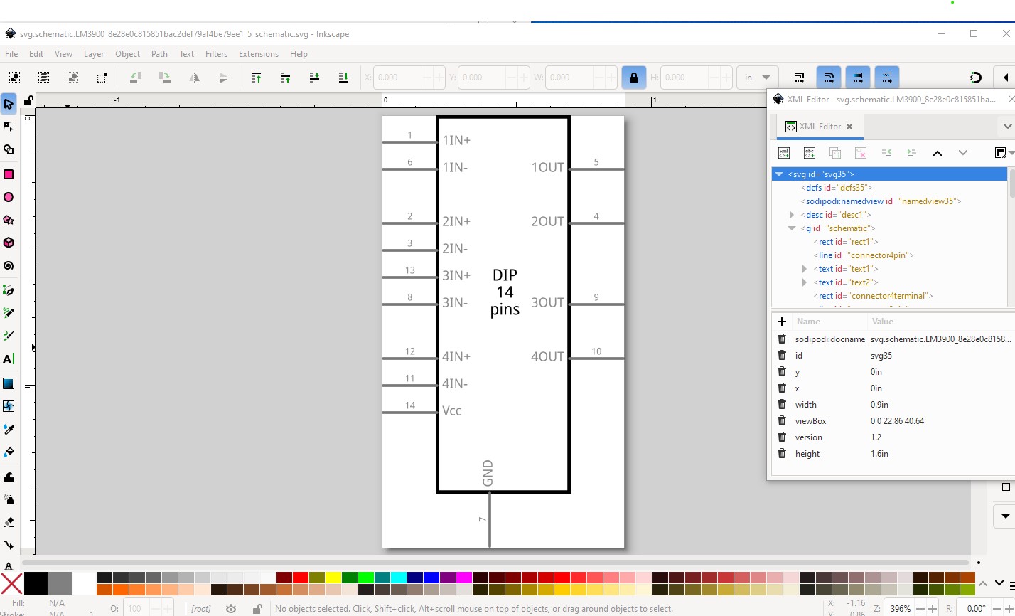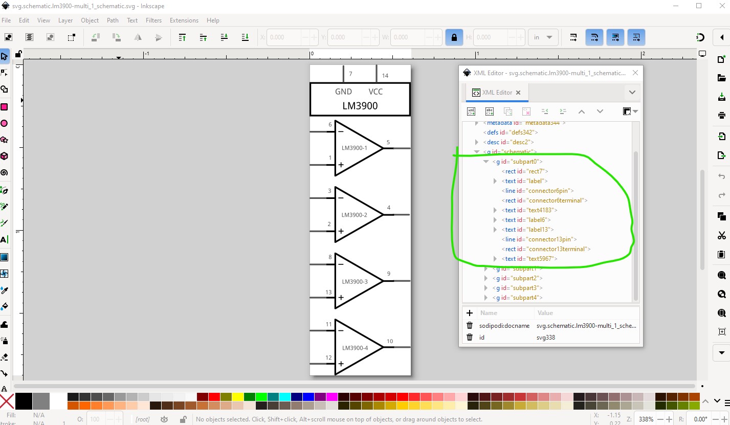 (which doesn’t match what schematic is showing and I don’t know why or how you managed to get this sketch nor how it is working as far as it is!) It needs to look like this to work. With the subgroups missing schematic won’t work correctly. You would need to add the text to this svg. That may which be difficult and may need changes in part size to make the op amps larger to get enough space to add the text. I can do that for you if you like and make sure the result works correctly.