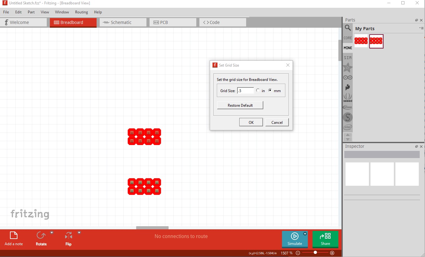 wires won’t work (I can only connect to every other pin even with the 0.5mm grid size) as the wire will select when I try and add a wire to the next pin over, but as you note the connectors if aligned exactly should connect fine.