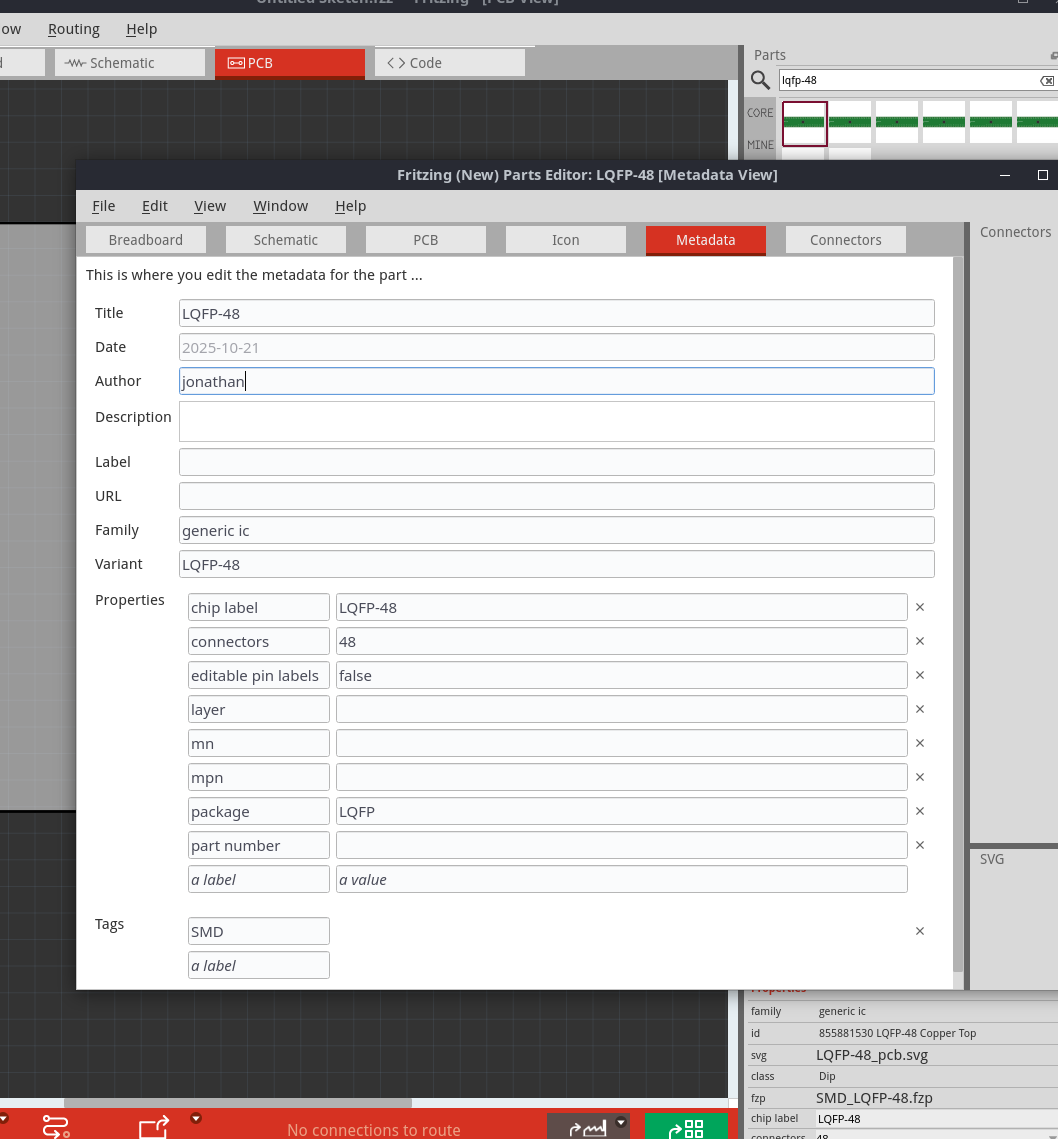 There is a generic LQFP-48 part in Fritzing, that you can try.