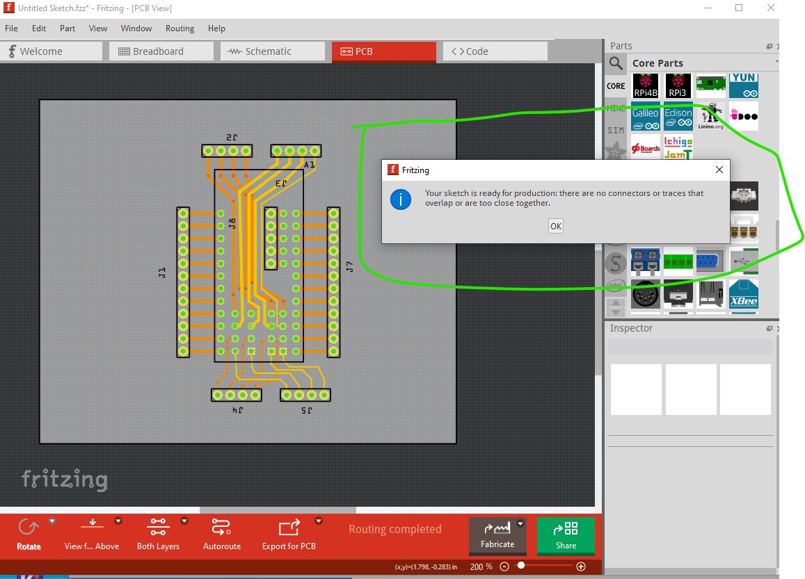 which with the grid size set to 0.025in routes and passes default DRC settings: