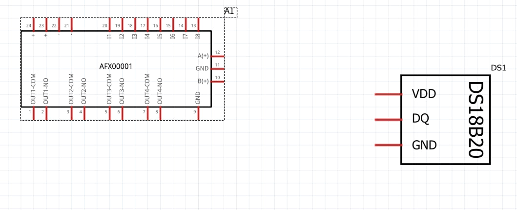 I need to do this in the program fritzing in the schematic section. I already found the mini PLC Arduino OPTA, DS18D20