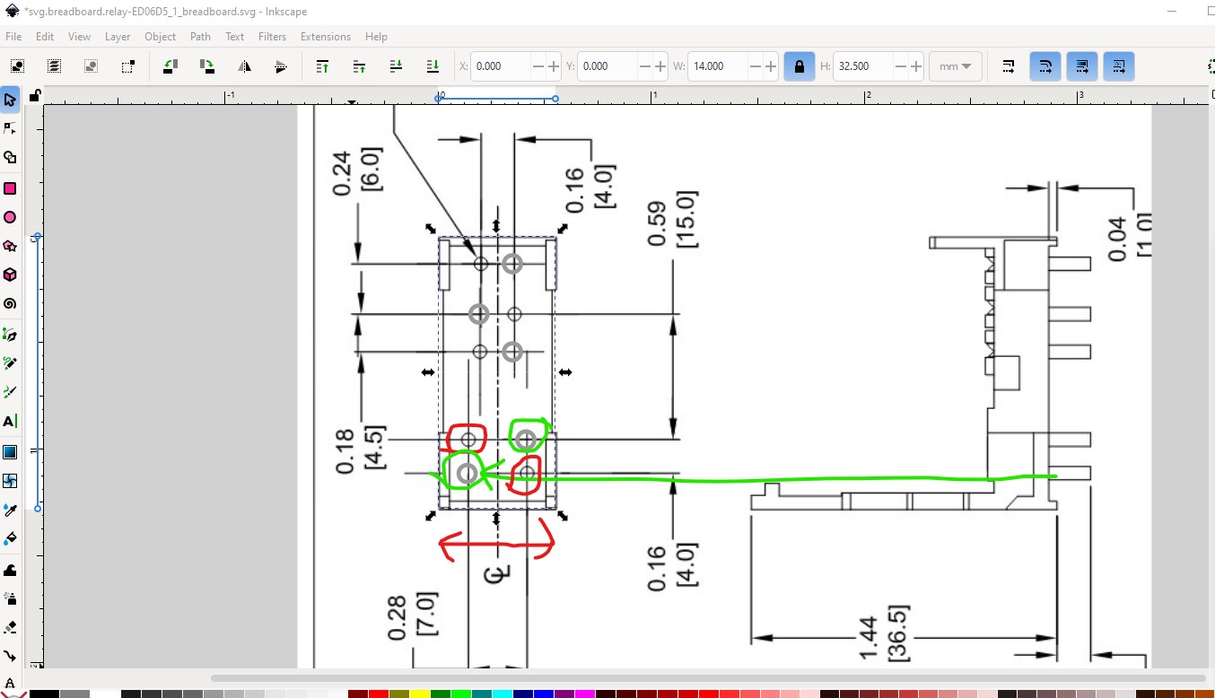 Now when I import the above image and scale it correctly the pins line up correctly with the image (the image here is flipped in horizontal so it is the view from the top of the socket.)