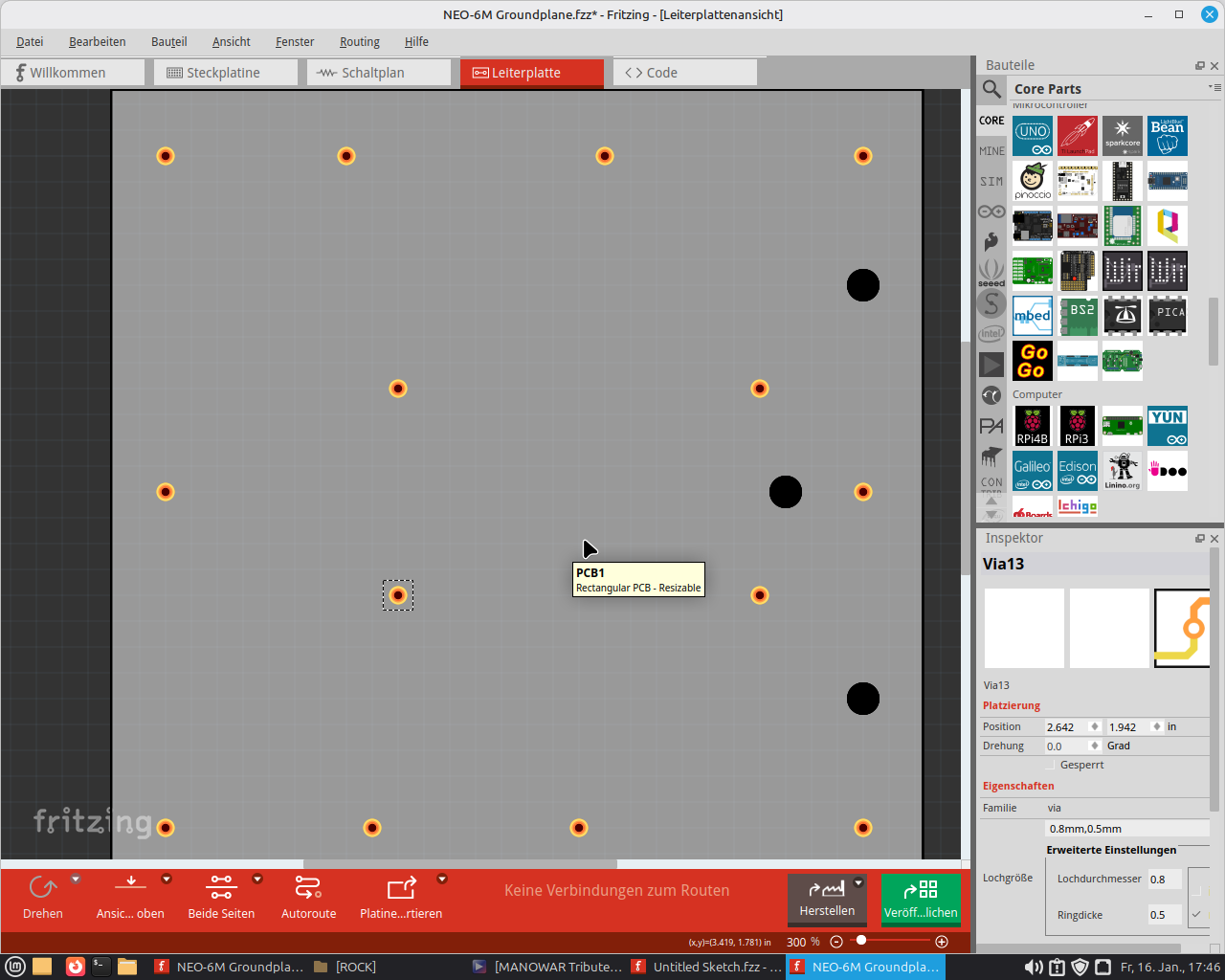 For that I need to make a square hole in a double-sided copper-clad PCB