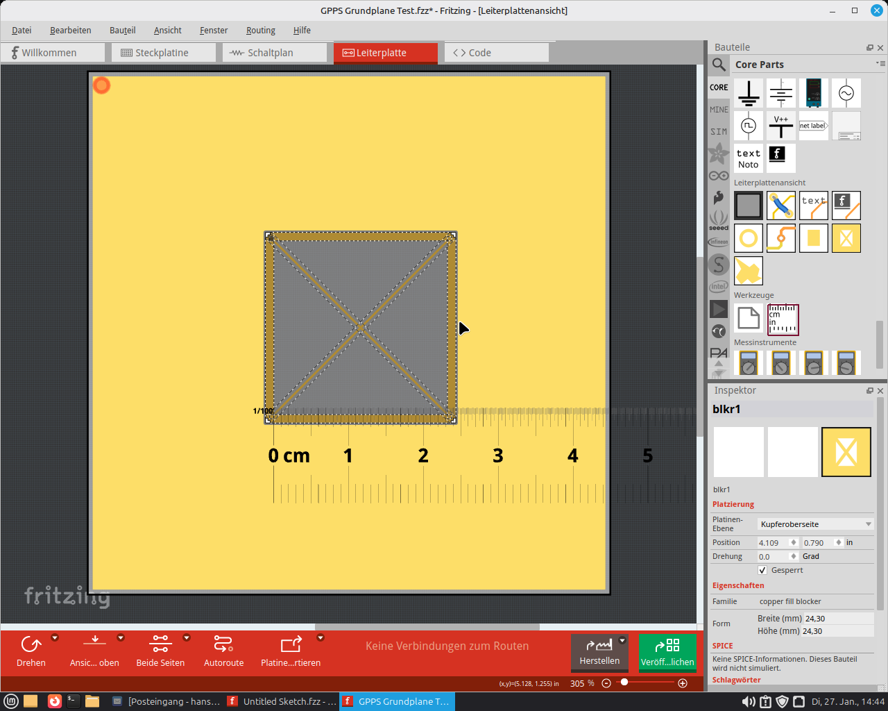Ich benötige da eine Größere Ground Plane = eine Doppelsetige platine die ich Durch bohren kann und Draht duchstecken muss diesen dann verlöten