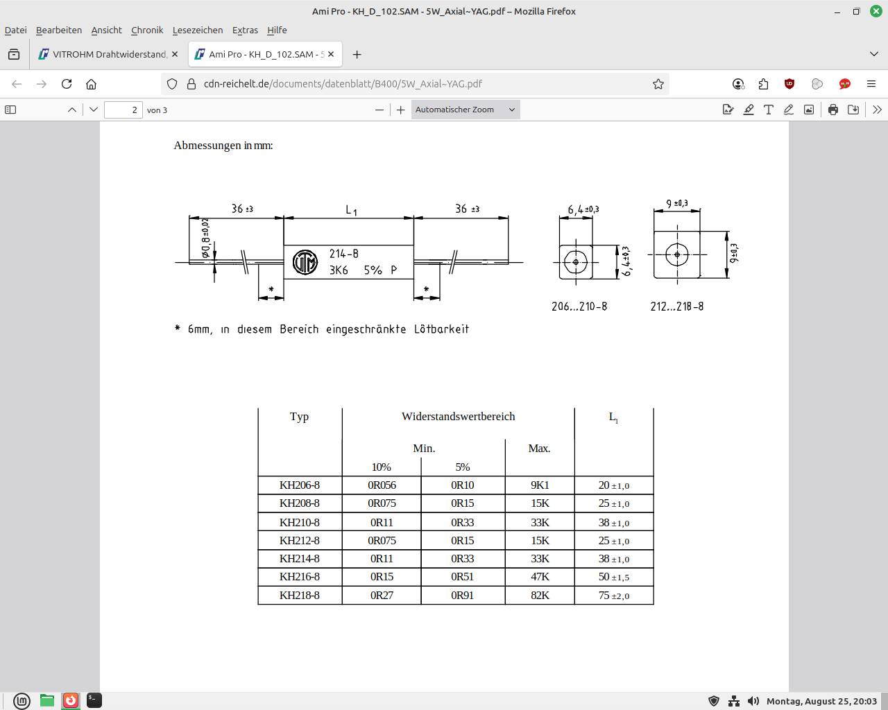 Dieser Beitrag sollte für den Leistungswiderstand ausreichen: