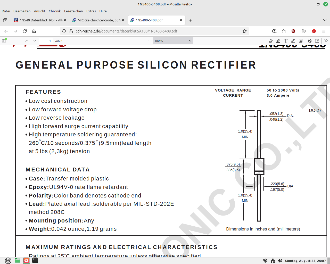 Und die 1N4001-Diode in den Kernbauteilen sollte für die Gleichrichter ausreichen: