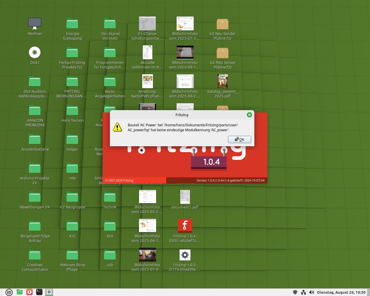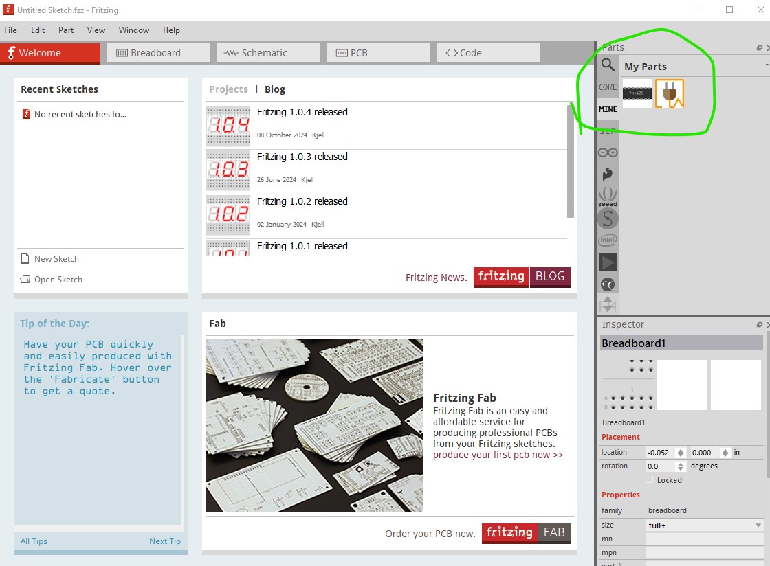 Fritzing ist Platt gemacht und wieder neu installiert worden…alles wieder drauf bis auf My Parts…