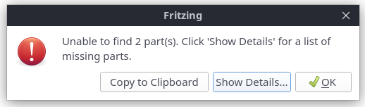 Unter “Show Details” sieht man, dass die Icons “AG bin.png” und “AG bin-mono.png” nicht gefunden werden. Dazu gibts gleich zwei Probleme, zum einen sind die Icons falsch benannt ( Leerzeichen anstelle Unterstrich ), zum anderen hat Fritzing tatsächlich ein Problem beim Extrahieren von Icons aus einem fzbz.