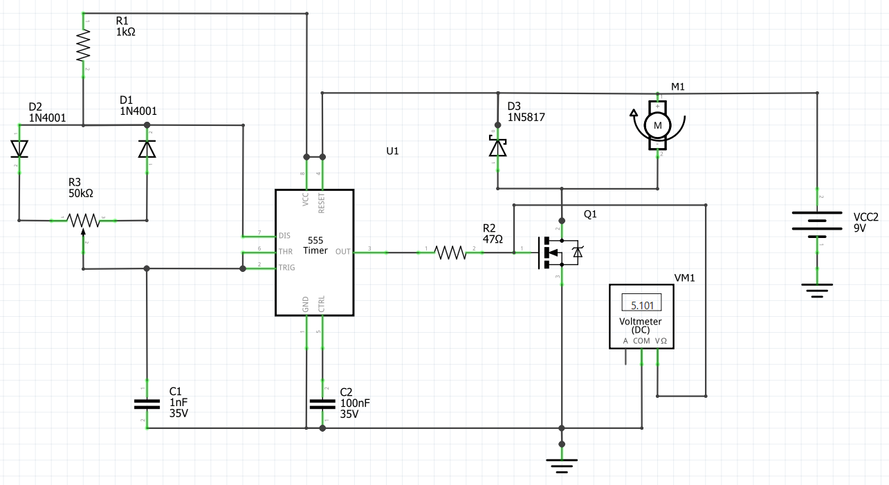 My project is a PWM motor DC controler, but i can’t understand what is a problem with my Fritzing project, that not simulate a variable DC or CC to simulate a motor variable DC.