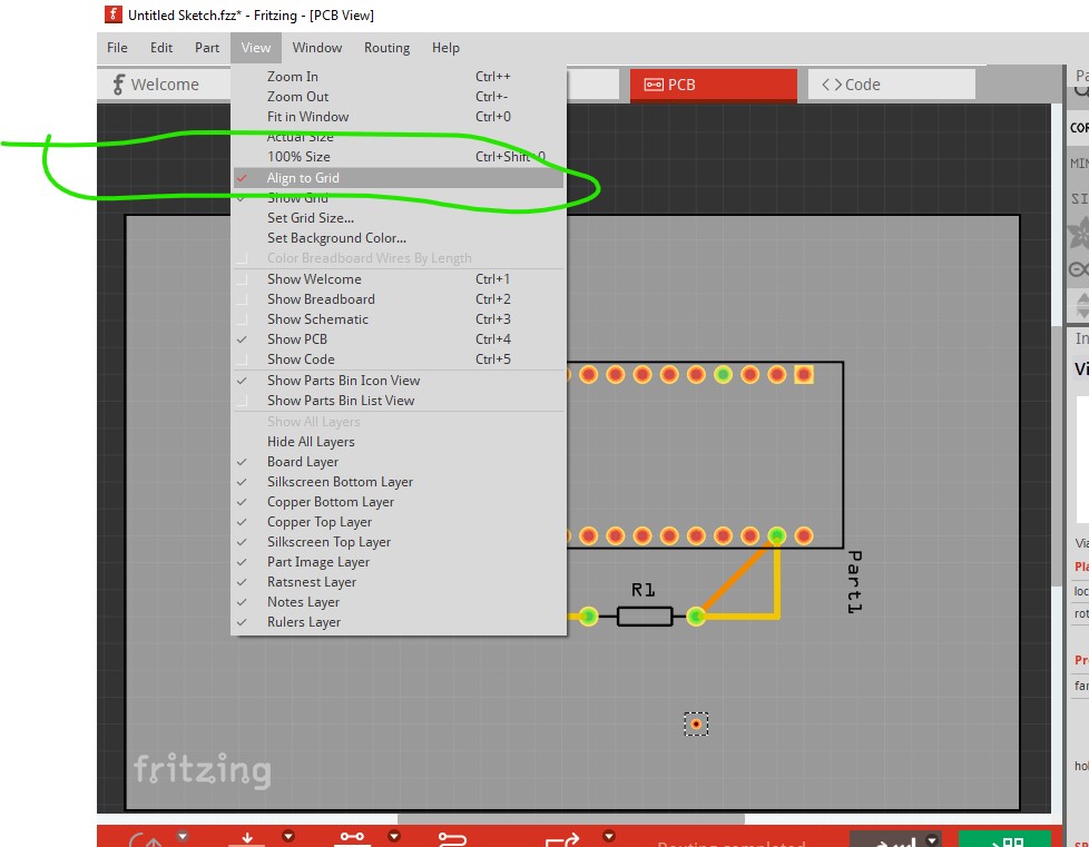 Then to move the trace, click in the middle of it and drag it in the direction you want it in the direction you want it to go (the bend point will snap to the grid!) like this: