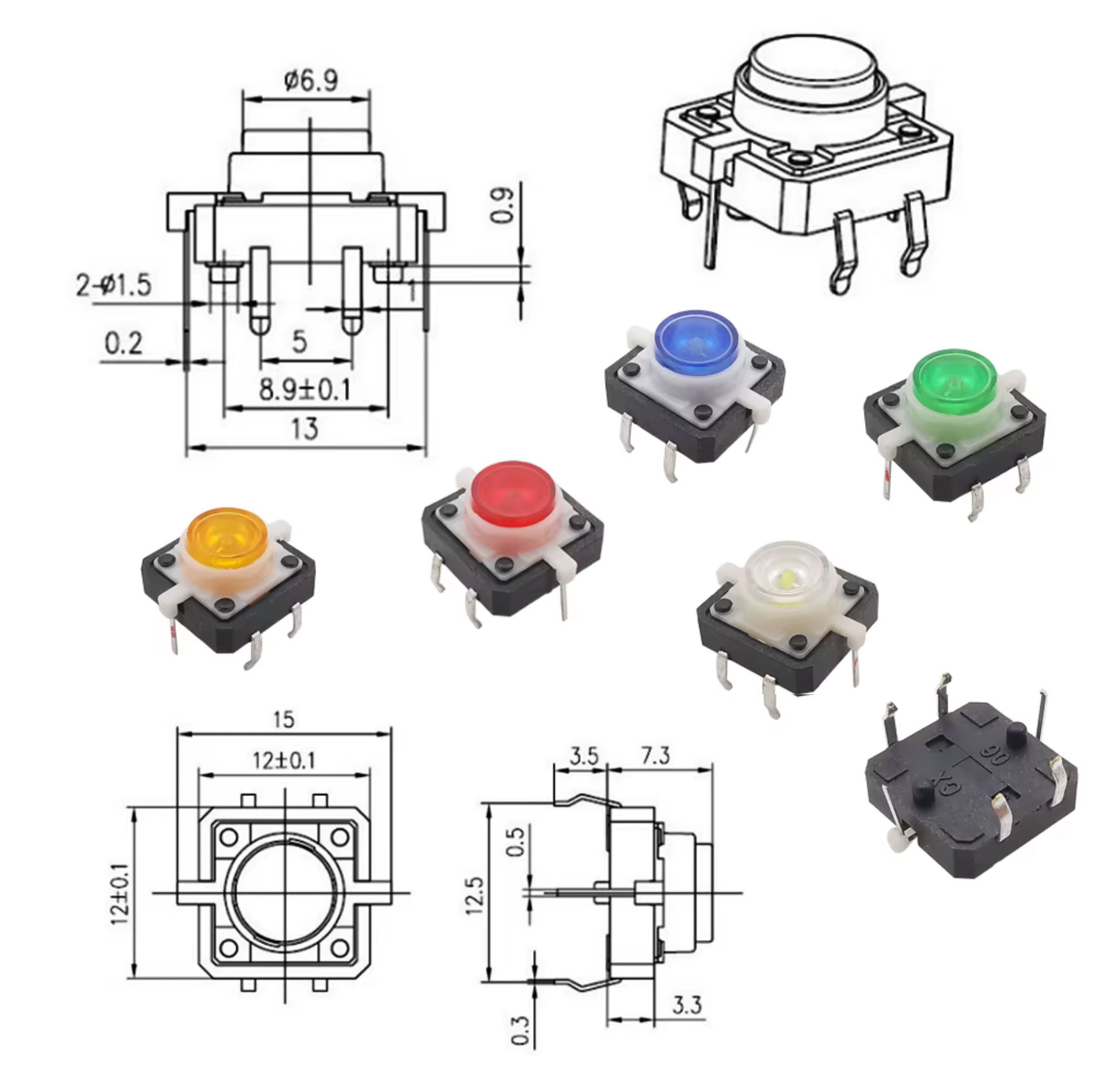Button (including all measurements in the description) on Aliexpress: Taktile Druckknopf schalter 12x12x7,3mm 4-poliger beleuchteter Taktsc halter LED-Licht taste Moment schalter zurücksetzen 12*12*7,3mm - AliExpress