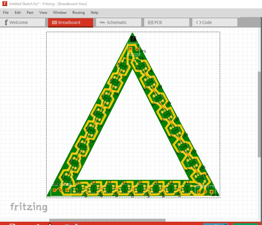 Ich bin mir nicht sicher, was Sie hier fragen. Mir ist nicht klar, was Sie erreichen wollen. Wollen Sie eine Platine erstellen, die kreisförmig ist wie diese hier (die ein Dreieck und kein Kreis ist?)