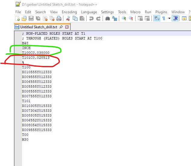 As well the holes are too small. Here I exported the sketch to gerbers and then edited the drill.txt file to get the hole sizes. The headers should be 0.038in but yours are 0.028 (probably because the pads are the wrong diameter because of the scaling) which likely won’t work.